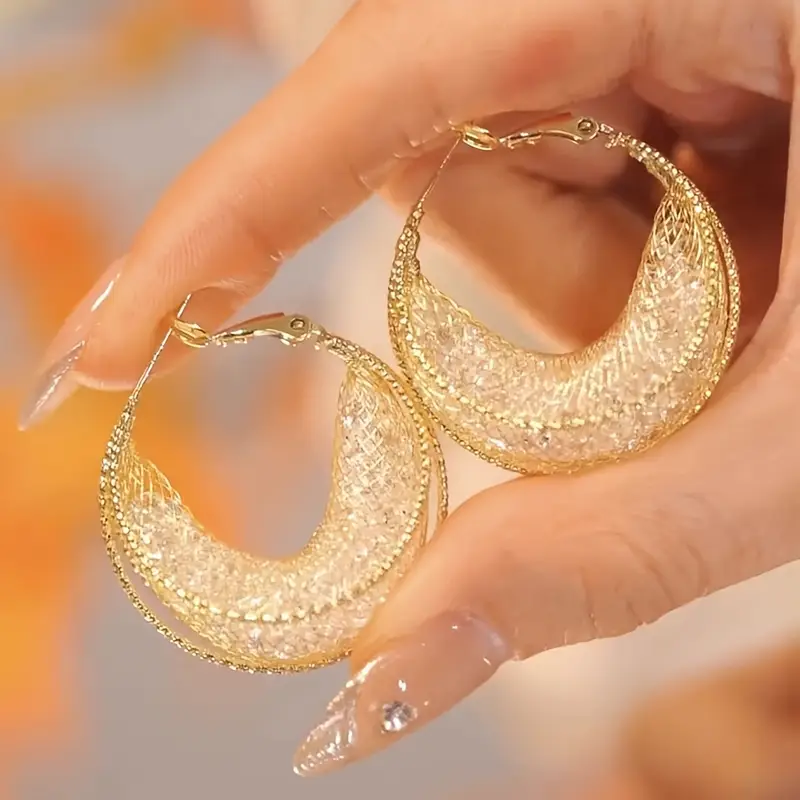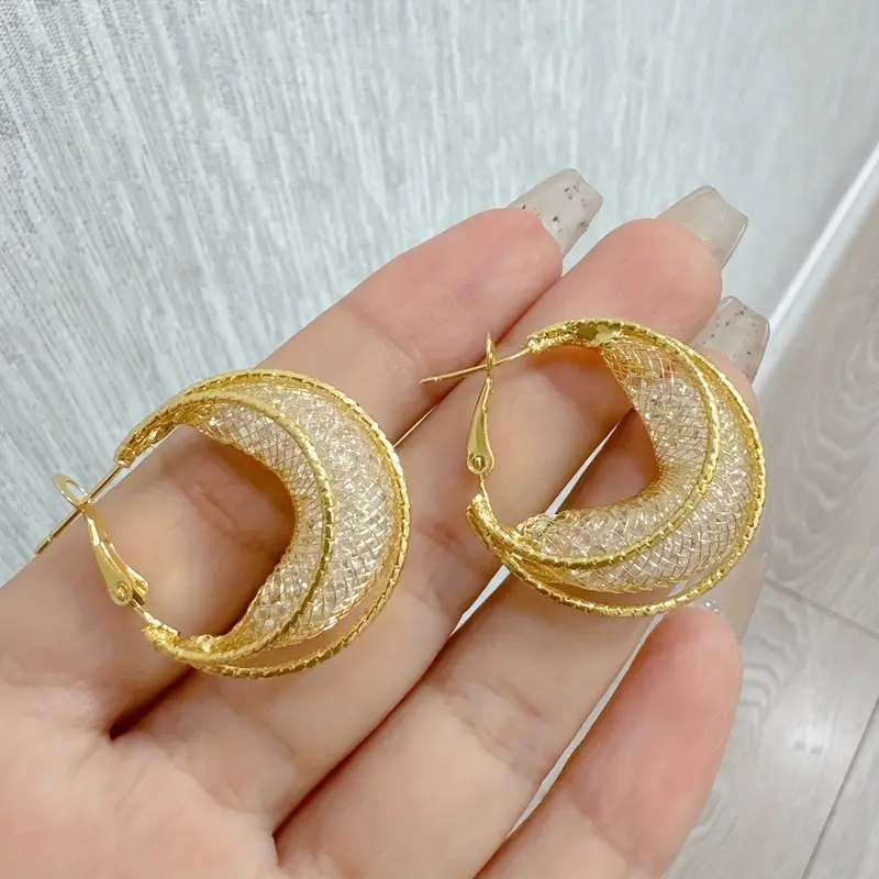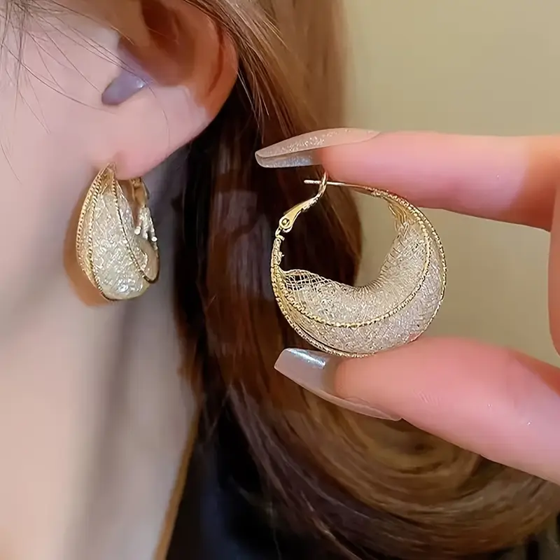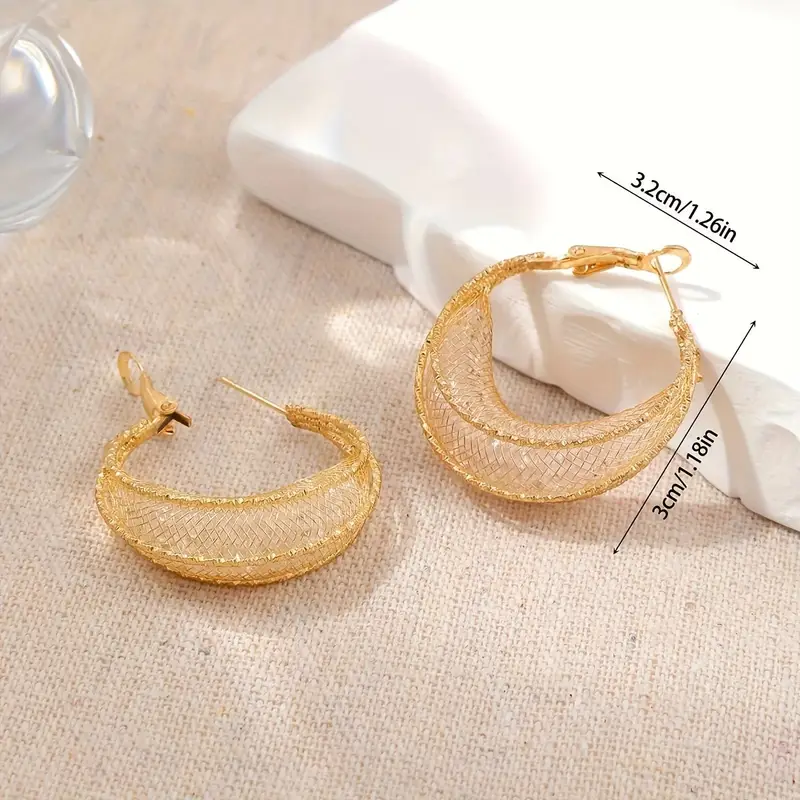 Elegant Gold Mesh Hoop Earrings
